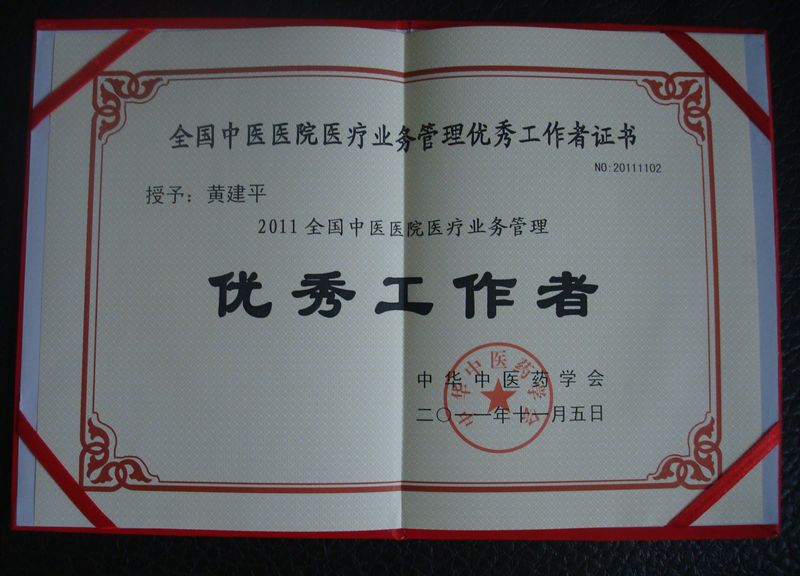 我院黄建平院长荣获"全国中医医院医疗业务管理优秀工作者"称号