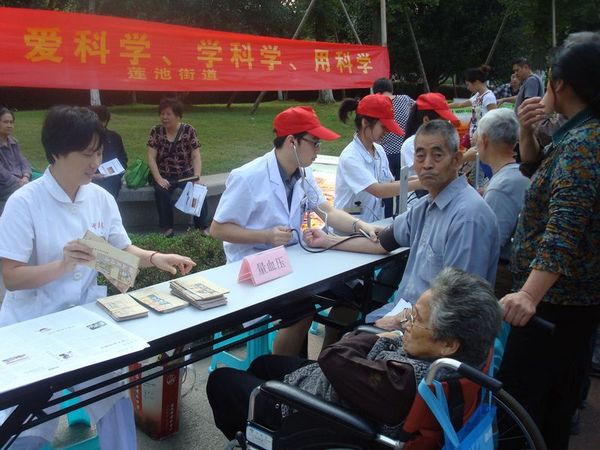 院保健科组织开展志愿者服务进社区活动9月20日上午,我院与莲池街道,张府基社区联合举办科普宣传及志愿者服务进社区活动。我院保健科组织了5位医护人员在松台广场为广大市民群众开展义诊,活动现场为广大市民测量血压约300人次,发放科普知识材料、医院就…查看详情+