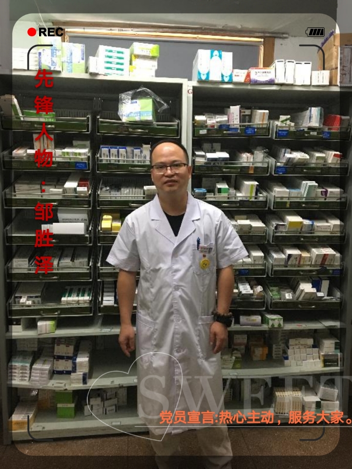 【先锋微故事】邹胜泽:小岗位,大责任邹胜泽,1978年2月出生,中共党员,药剂师。他在药剂岗位20余年,每天从事收方、审方、配药、发药、交代用药注意事项的窗口工作,耐心解答,不厌其烦,近年来因工作表现突出转为药事管理岗位,他常说自己现在在扮演着…查看详情+