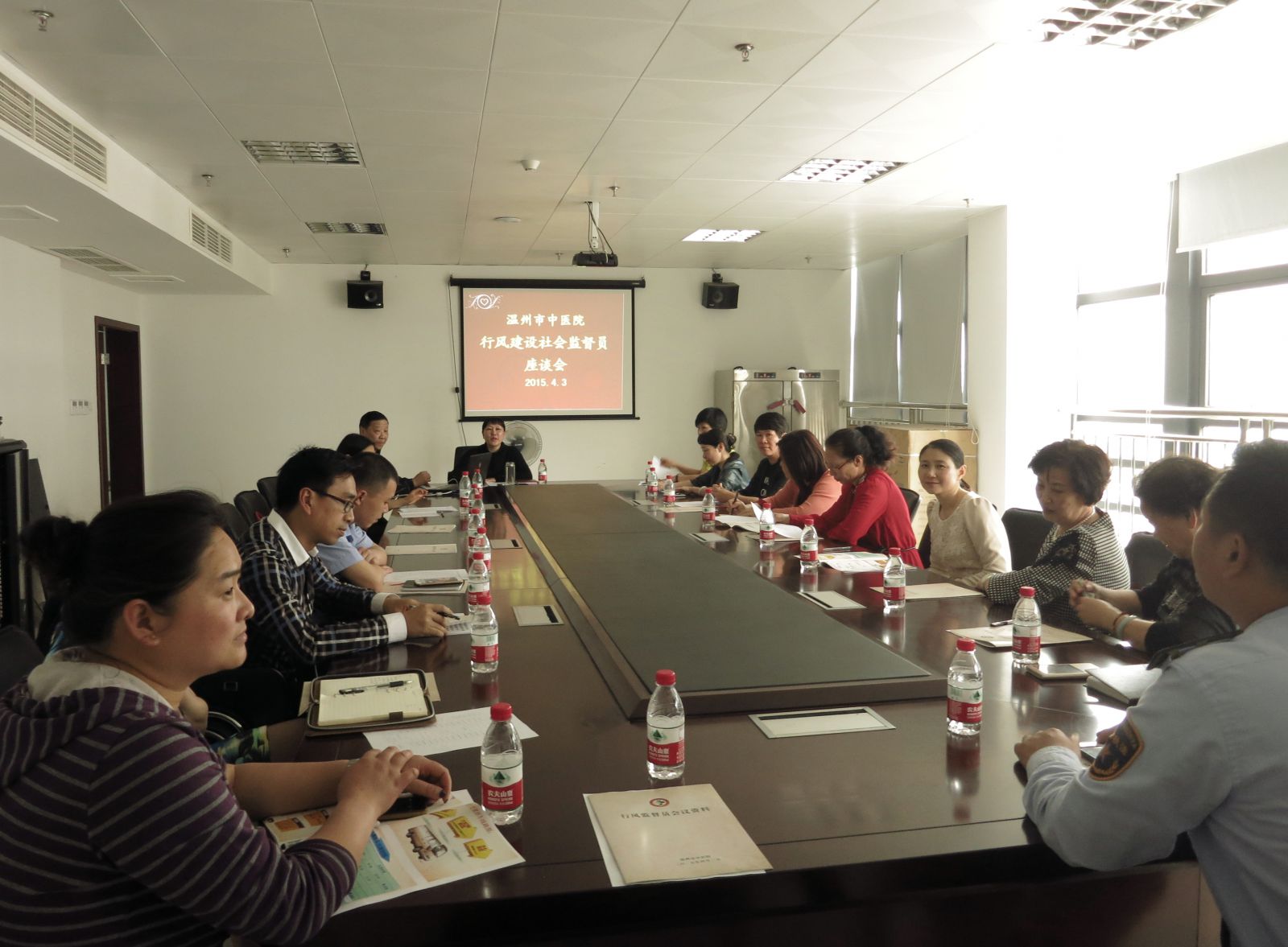 我院举行2015年度行风建设社会监督员座谈会4月3日下午,2015年度医院行风建设社会监督员座谈会在六虹桥新院区三楼会议室举行。会议由医院党委副书记、纪委书记黄爱林同志主持,市财政局、医保办、媒体以及四个院区周边的学校、社区、职能执法部门的15位代表和医…查看详情+