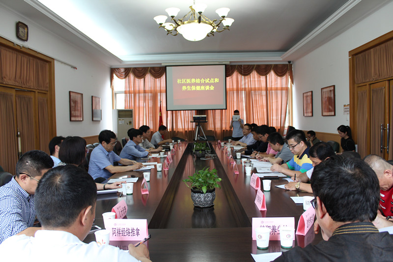 医养结合试点及养生保健座谈会在我院召开5月27日下午,医养结合试点及养生保健座谈会在我院召开,市人大常委会副主任卓高柱、市人大常委会教科文卫主任委员谷献旦、市人大教科文卫副主任赵松涛、市人大教科文卫副主任徐文理、市卫计委副主任蔡文云、市中医院…查看详情+