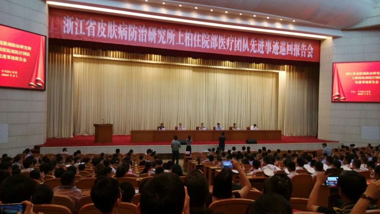 我院组织党员参加省皮防所上柏住院部先进事迹巡回报告会在温州市人民大会堂举行的浙江省皮防所上柏住院部医疗团队先进事迹巡回报告会 为深入开展党的群众路线教育实践活动,积极培育和践行社会主义核心价值观,大力宣传弘扬上柏住院部医疗团队的先进事迹和崇高精神…查看详情+