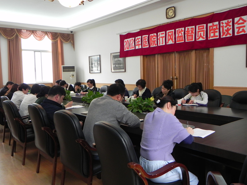 2012年医院行风建设监督员座谈会召开4月6日下午,我院在行政五楼会议室举行2012年医院行风建设社会监督员座谈会。会议由院纪检书记黄爱林主持,温州海关、莲池街道和周边的学校、社区、媒体记者等10余名代表以及医院相关职能部门负责人参加了座谈会。 …查看详情+