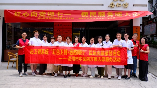 红心向党迎七一,便民服务暖人心为庆祝中国共产党成立104周年,传承红色基因,践行服务为民宗旨,6月22日,香蕉视频 内科第一党支部、中共西坑畲族镇安基金党支部、农工民主党香蕉视频 总支及文成县中医院,在文成县西坑畲族镇安民坊联合开展“…查看详情+