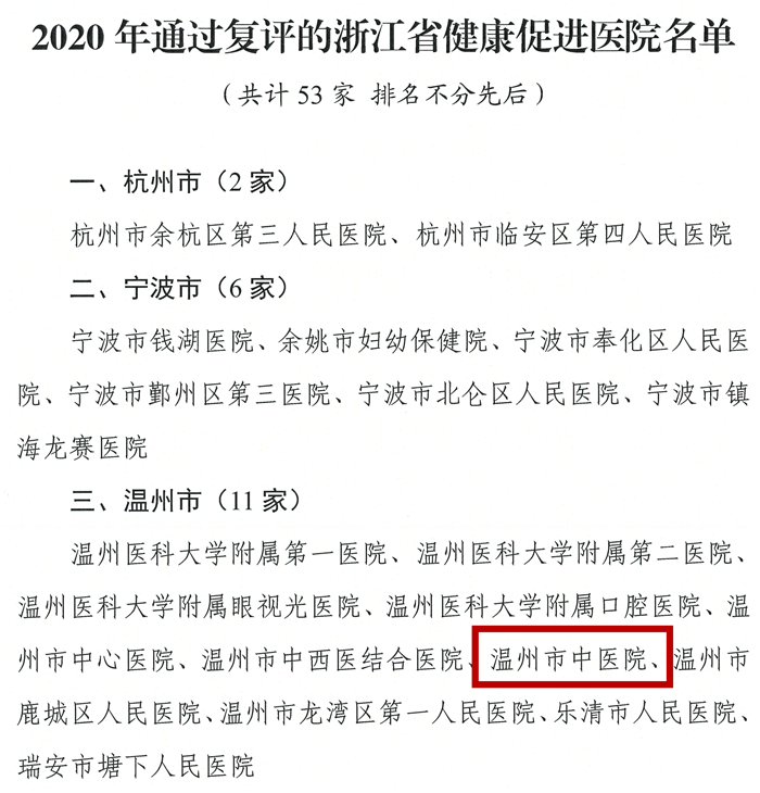 喜讯!香蕉视频 顺利通过浙江省健康促进医院复评!近日,浙江省爱卫办、浙江省卫生健康委公布了2020年浙江省健康促进医院评估结果,香蕉视频 榜上有名,顺利通过健康促进医院复评! 健康促进医院是把健康促进的理论、理念和策略应用到医疗机构当中去,以提升人…查看详情+