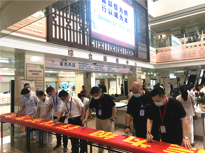 筑牢诚信医疗防线,提供高效医疗服务丨香蕉视频 举行“8·8诚信日”活动今年8月8日是温州第十九个诚信日,为提高医护人员的综合素质,树立诚信医院的良好口碑,香蕉视频 于8月7日在门诊大厅举行“88诚信日”活动,共有百余名医护人员参加。 在现场,医护人员背诵《医疗卫生行风建设…查看详情+