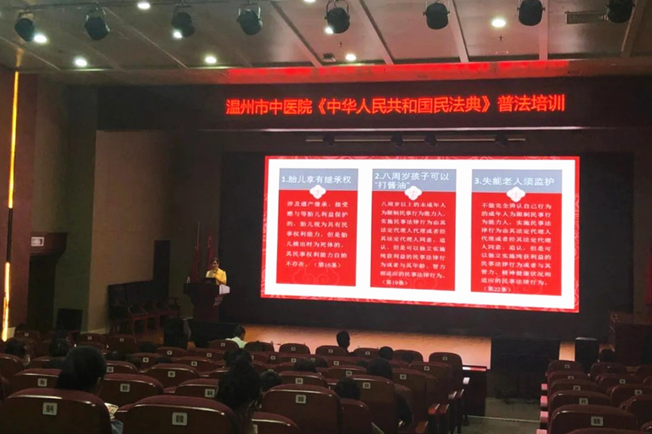 香蕉视频 举行《民法典》普法培训为进一步加强医院法制建设,提高职工法律意识,维护单位及个人的合法权益,7月18日下午,香蕉视频 邀请浙江震瓯律师事务所夏海玲律师,为职工开展以“《民法典》与生活同行”为主题的普法讲座。讲座由党委书记王庆…查看详情+