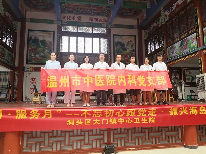 服务百姓海岛行——我院内科党支部红七月活动为纪念中国共产党成立98周年,我院内科党支部联合洞头区大门镇中心卫生院,在小门村开展了“不忘初心跟党走,振兴海岛齐助力”为主题的“红七月.服务月”活动。7月7日上午,在消化科曾耀明主任的带领下,由我院消化内…查看详情+