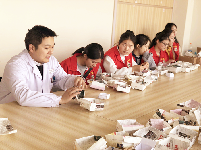 我院举行植树节 “绿色行动 纸献爱心”活动。为提倡绿色环保,3月12日下午,香蕉视频 团委、综合支部联合“普安志工”志愿者,举行了植树节“绿色行动纸献爱心”活动。大家将从我院各科室搜集来的废纸制作成环保垃圾纸盒和“吐痰器”后,在门诊部及住院部分发…查看详情+