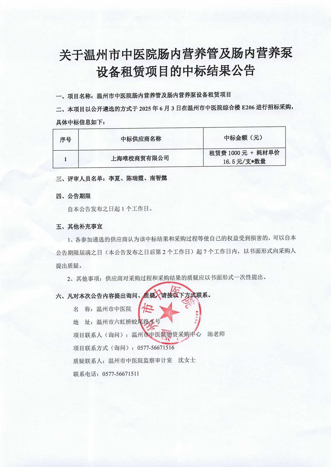 香蕉视频 肠内营养管及肠内营养泵设备租赁项目中标公告