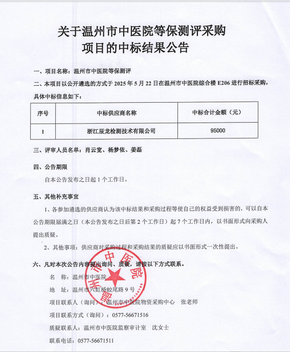 关于香蕉视频 等保测评项目的中标(成交)结果公告