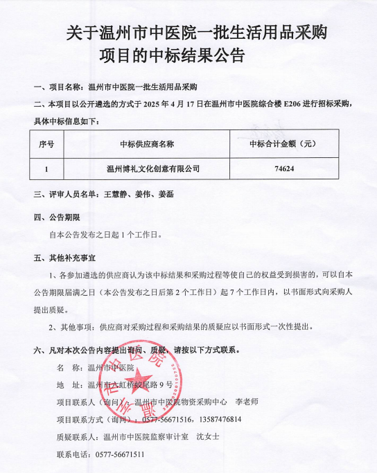 关于香蕉视频 一批生活用品采购项目的中标(成交)结果公告查看详情+