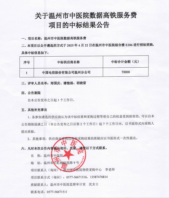 香蕉视频 高压氧舱新建工程竣工测绘项目询价成交结果公示香蕉视频 高压氧舱新建工程竣工测绘项目于2025年4月21日下午14点30分在六虹桥院区综合楼E309会议室开标,最终中标结果如下,特此公告。公示期为三天,从公示之日起计算。在公示期限内,投标人和其他利害关系人可通…查看详情+