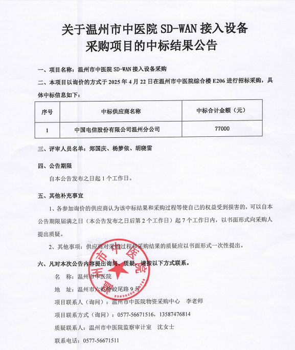关于香蕉视频 SD-WAN接入设备采购项目的中标(成交)结果公告