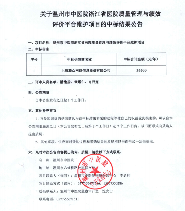 关于香蕉视频 浙江省医院质量管理与绩效评价平台维护项目的中标(成交)结果公告查看详情+