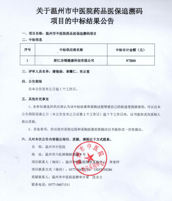 关于香蕉视频 药品医保追溯码项目的中标(成交)结果公告