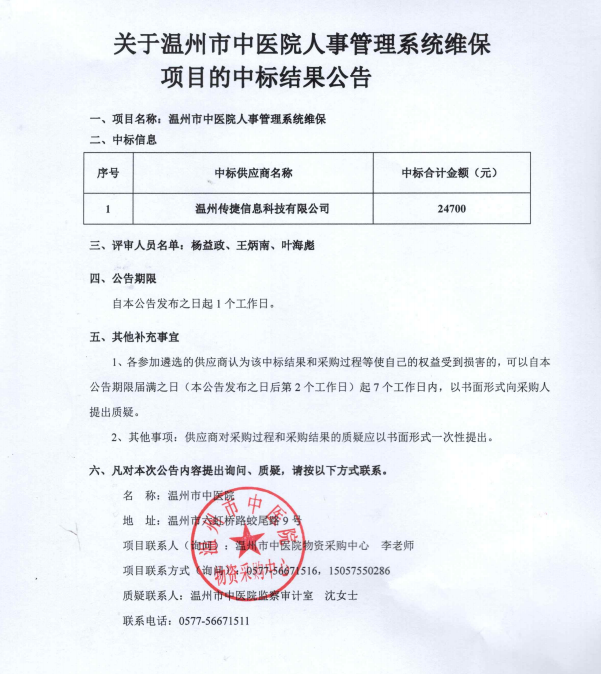 关于香蕉视频 人事管理系统维保项目的中标(成交)结果公告