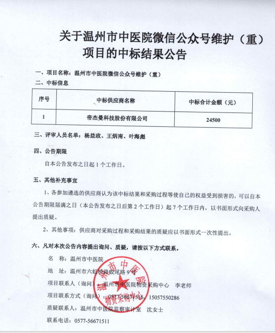 关于香蕉视频 微信公众号维护(重)项目的中标(成交)结果公告
