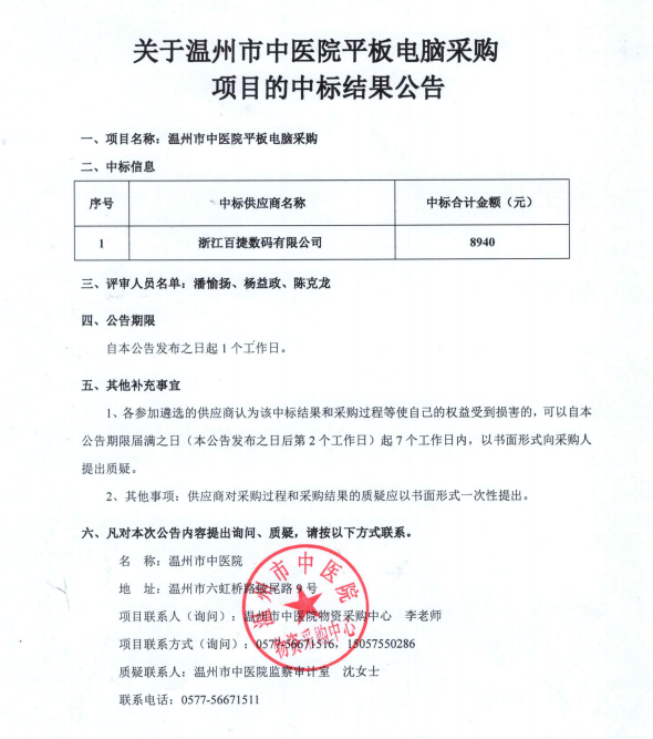 关于香蕉视频 平板电脑采购项目的中标(成交)结果公告