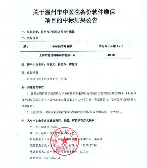 关于香蕉视频 备份软件维保项目的中标(成交)结果公告