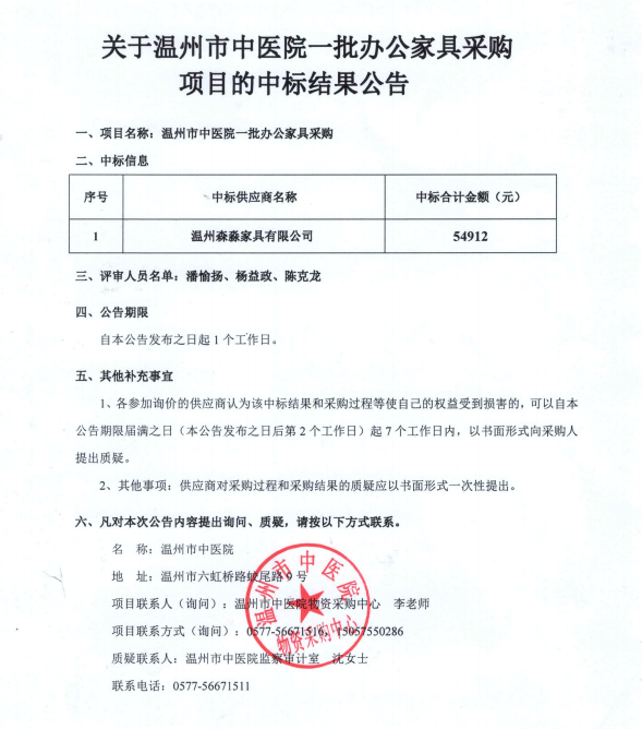 关于香蕉视频 一批办公家具采购项目的中标(成交)结果公告查看详情+