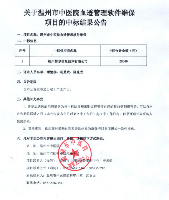 关于香蕉视频 血透管理软件维保项目的中标(成交)结果公告