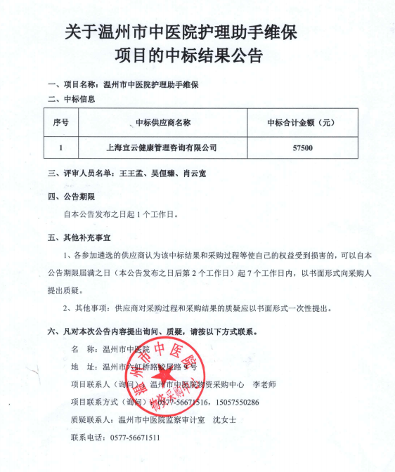 关于香蕉视频 护理助手维保项目的中标(成交)结果公告