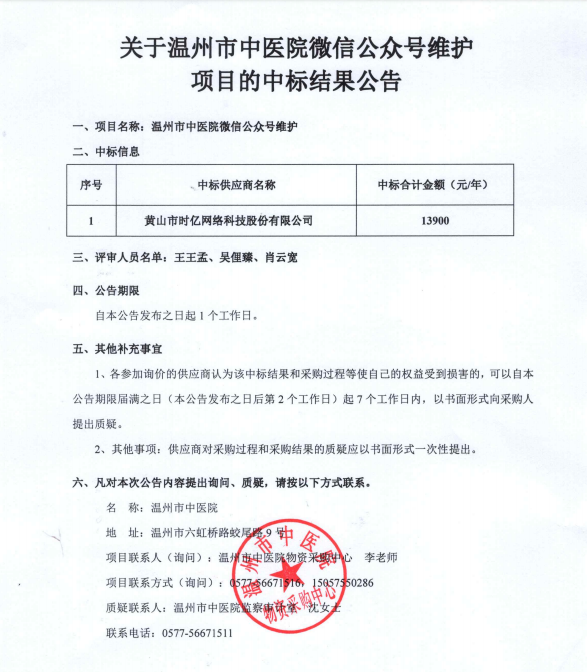 关于香蕉视频 微信公众号维护项目的中标(成交)结果公告