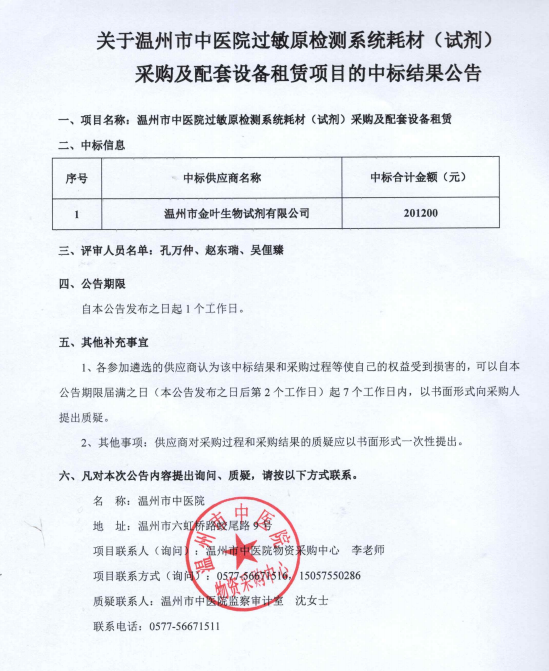 关于香蕉视频 过敏原检测系统耗材(试剂)采购及配套设备租赁项目的中标(成交)结果公告查看详情+