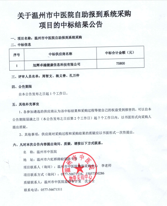 关于香蕉视频 自助报到系统项目的中标(成交)结果公告查看详情+