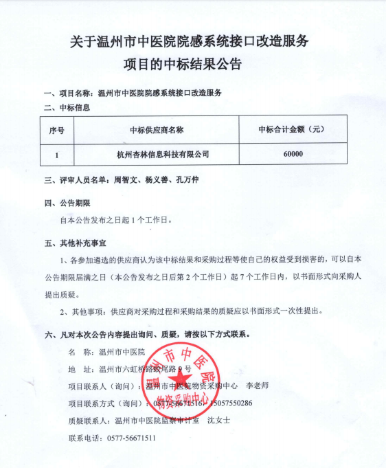关于香蕉视频 院感系统接口改造服务项目的中标(成交)结果公告查看详情+