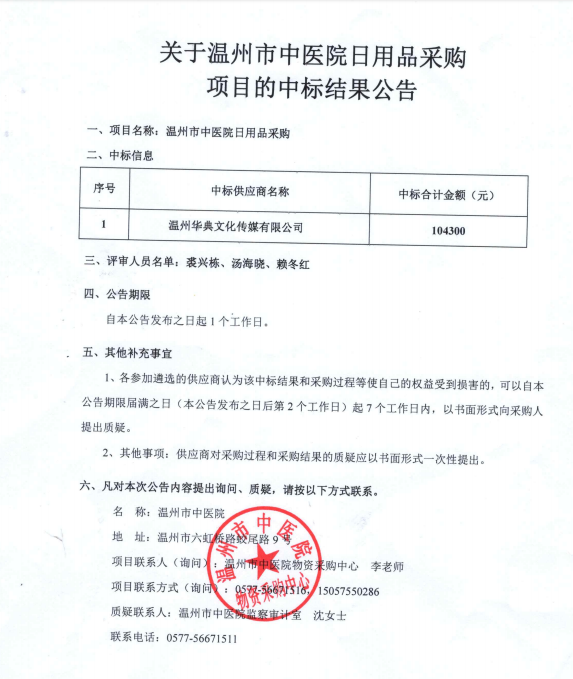 关于香蕉视频 日用品采购项目的中标(成交)结果公告