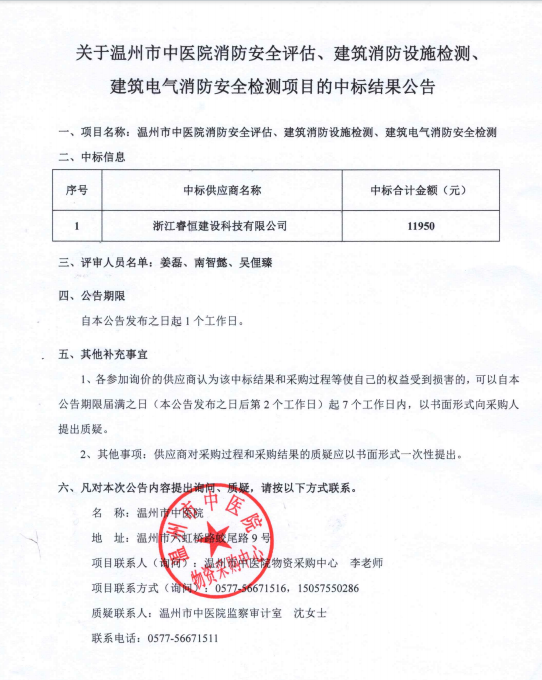 关于香蕉视频 消防安全评估、建筑消防设施检测、建筑电气消防安全检测项目的中标(成交)结果公告查看详情+