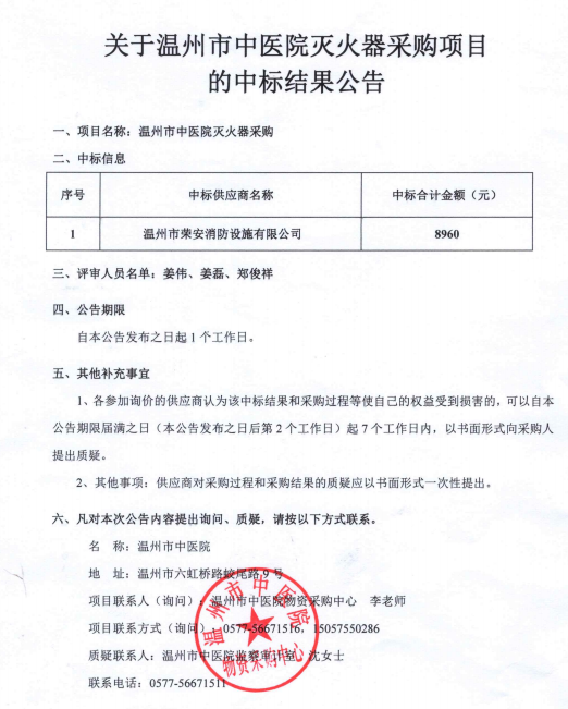 关于香蕉视频 灭火器采购项目的中标(成交)结果公告