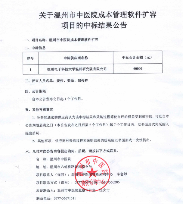 关于香蕉视频 成本管理软件扩容项目的中标(成交)结果公告