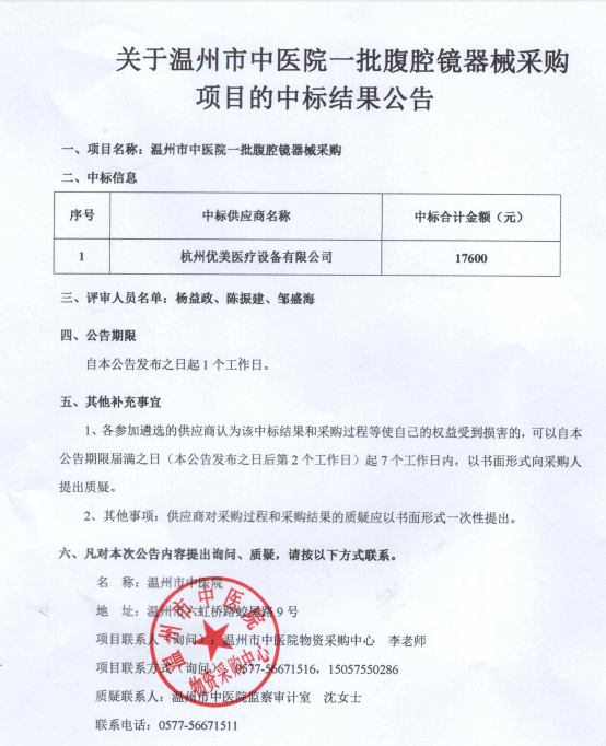 关于香蕉视频 一批腹腔镜器械采购项目的中标(成交)结果公告