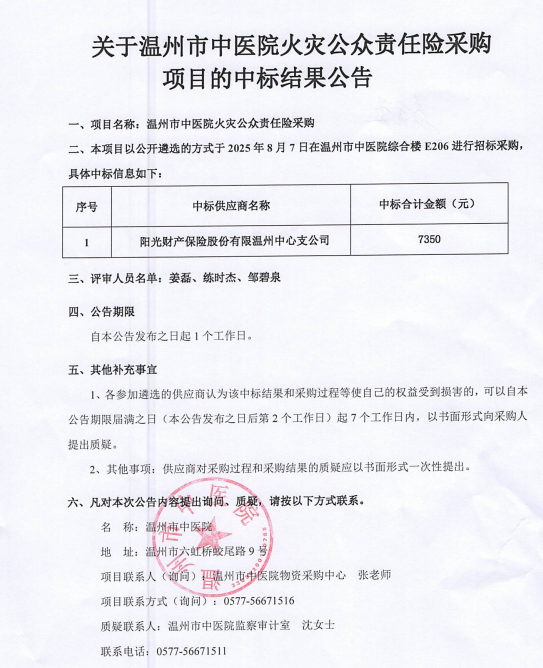 关于香蕉视频 火灾公众责任险采购项目的中标(成交)结果公告
