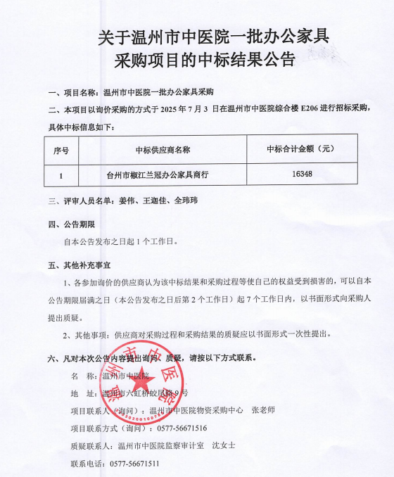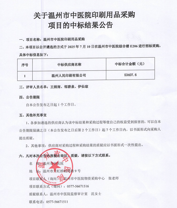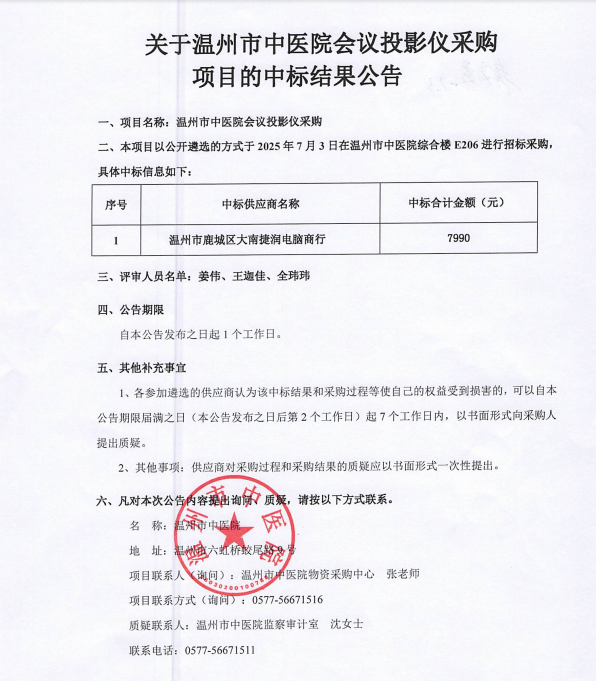 关于温州市中医药学会科普视频拍摄项目的中标(成交)结果公告