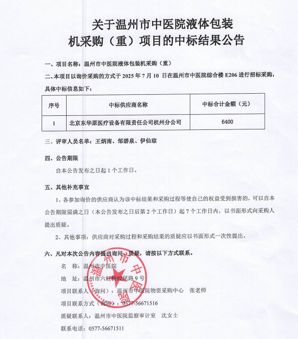 香蕉视频 水心院区拆建工程艾炙排烟采购及安装项目中标候选人公示通告由香蕉视频 建设的香蕉视频 水心院区拆建工程艾炙排烟采购及安装项目,招标代理人为浙江恒杰工程管理有限公司。于2025年7月21日在温州市鹿城区黎明西路236号国贸中心29楼会议室公开开标。按招标文件规定的评标方…查看详情+
