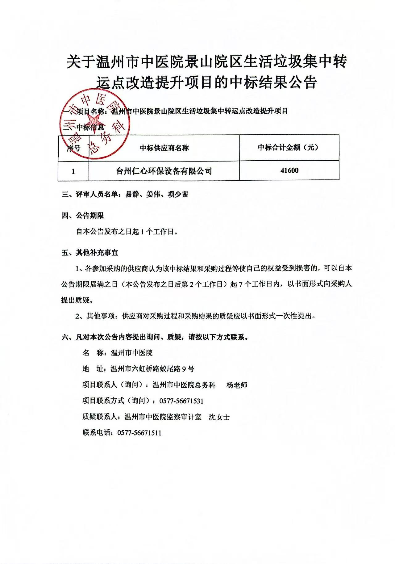 关于香蕉视频 景山院区生活垃圾集中转运点改造提升项目的中标结果公告