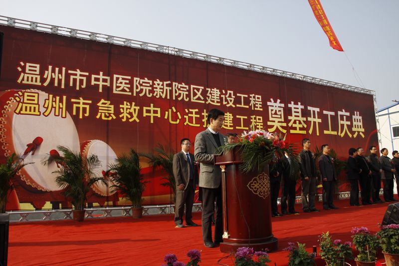 12月16日上午,香蕉视频 新院区建设工程、温州市急救中心迁建工程奠基庆典隆重举行。市委副书记朱贤良、副市长仇杨均、副秘书长颜华跃、巿人大文教科委主仼夏爱华、市卫生局局长朱锦平、市财政局副局长胡正武、市发改委党委副书记王爱光、市规划局副局长郑晓东、鹿城区副区长吴文玲、瓯海区副区长钱素文、市中医院院长黄建平、市急救中心主任陈仁裕等领导及我市各部门、省市地区兄弟医院、120急救指挥中心的领导们出席了庆典,叶世强副秘书长主持庆典。