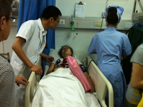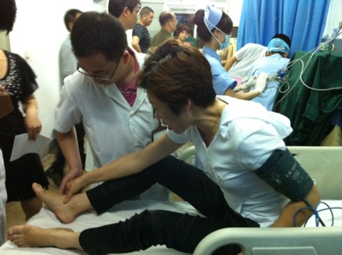 7月23日晚温州动车追尾事故发生后,我院接上级部门通知,立即启动应急预案,通知相关科室医护人员到位待命。23日晚11时许,医院先后收治事故伤员六人。经检查,六名病人以外伤为主,一名头部外伤伴脑出血,三名软组织挫伤,两名皮外伤。目前,伤势较重的病人已入住医院六病区外科进行治疗,两位病人在急诊留观,轻伤人员经包扎处理后已出院。