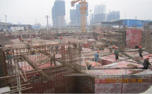 A区(主楼)完成完成地下室底板支模架搭设,进入剪力墙施工