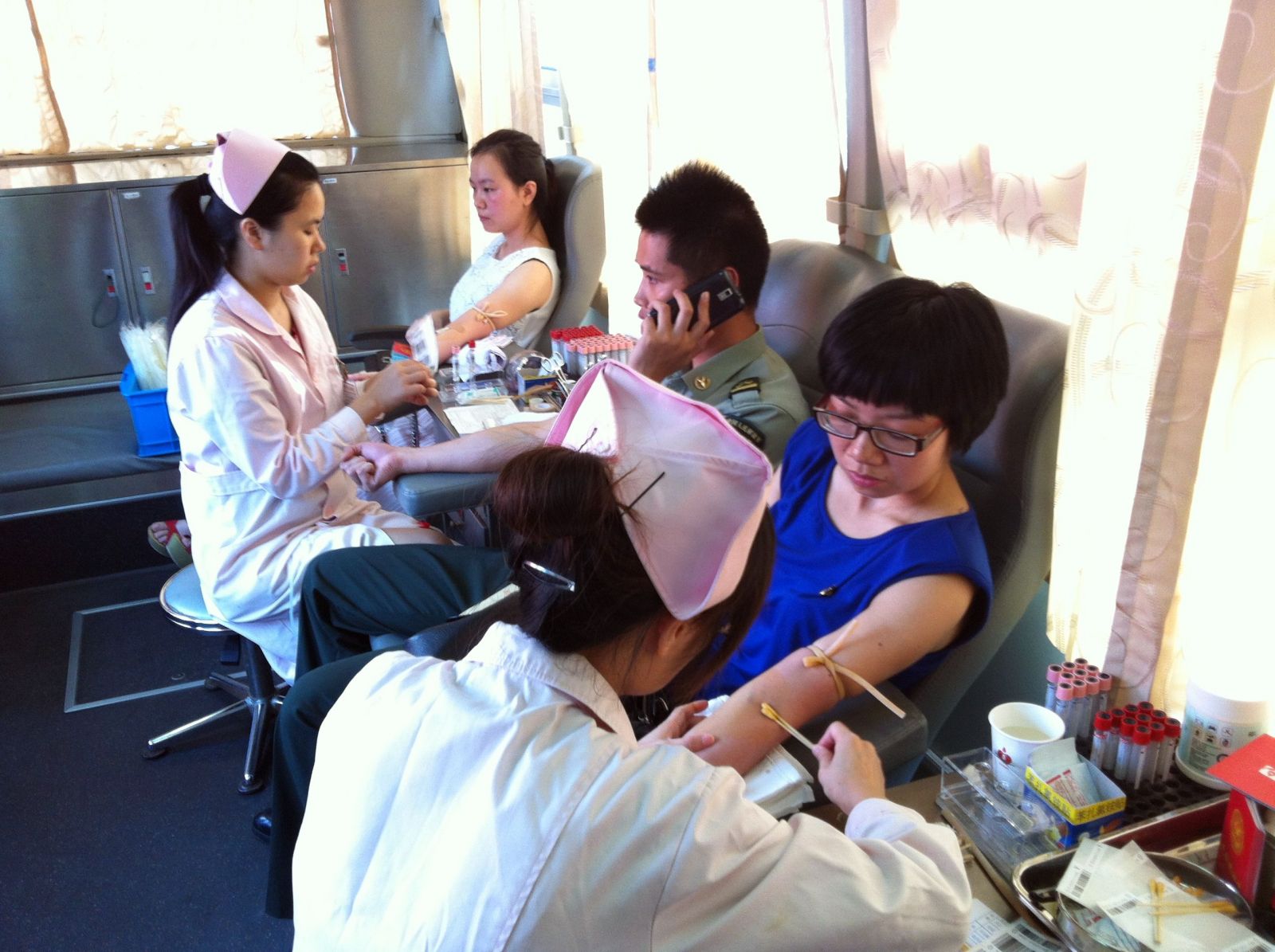 我院党委组织青年党员余维微、杜希涛、张爱国等人参加市直机关举办的”我为党旗添光辉“无偿献血活动