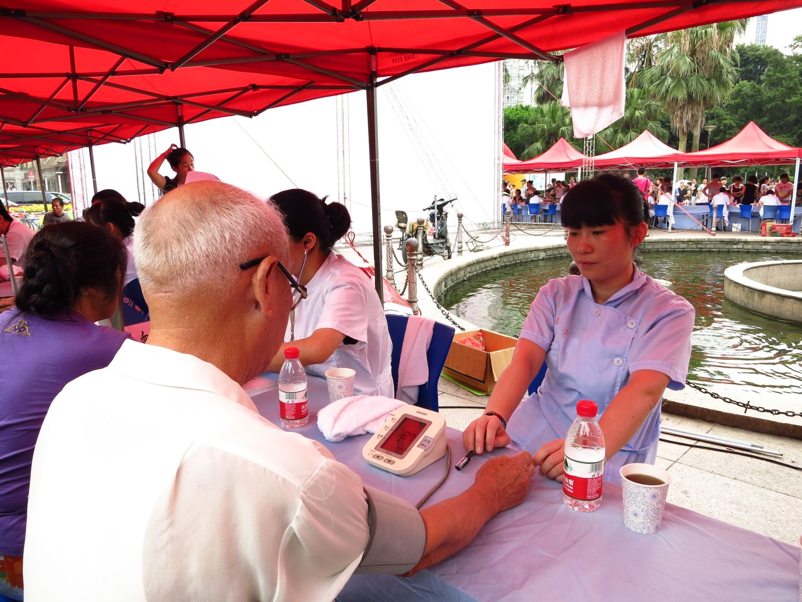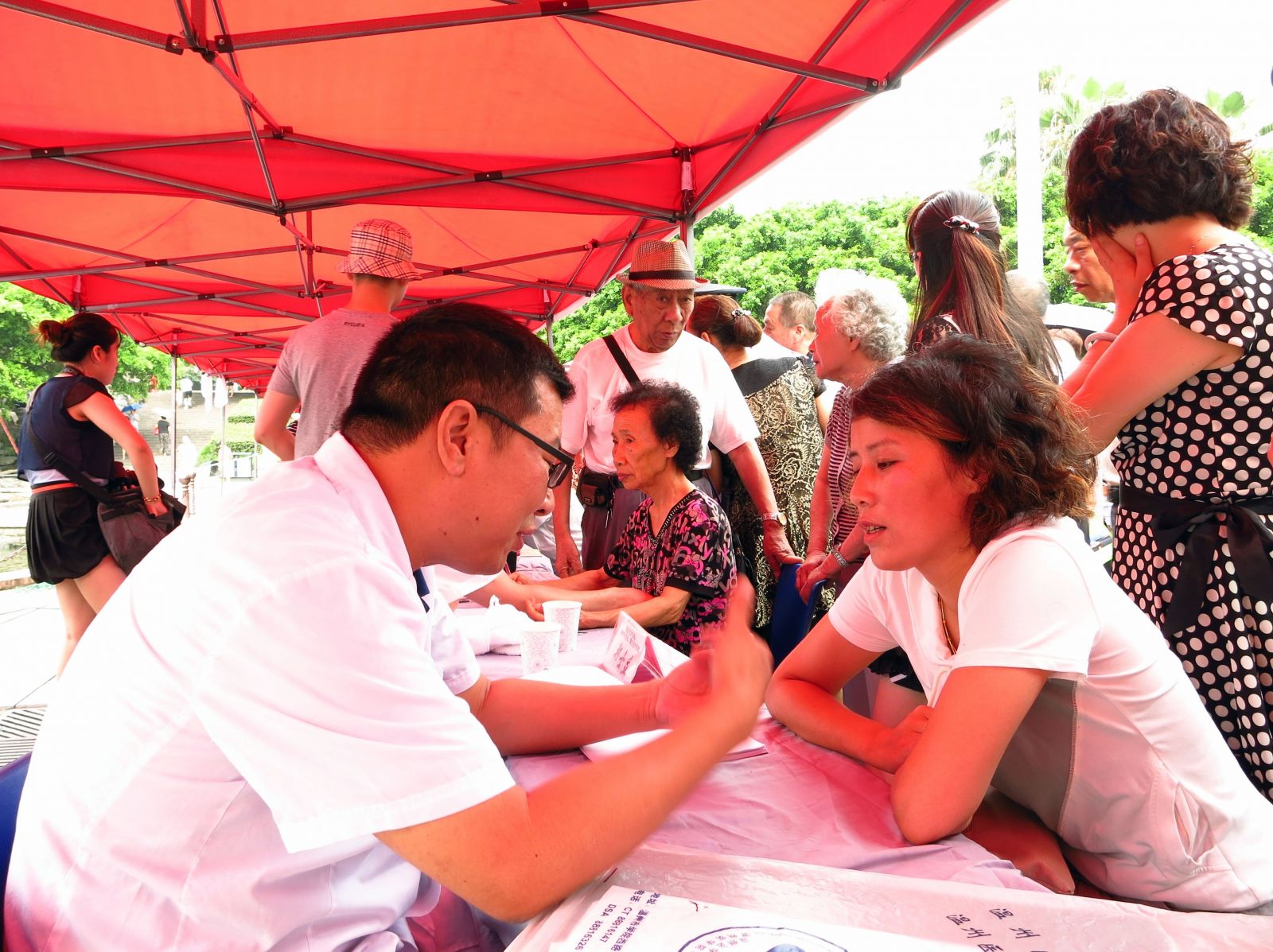 我院在松台广场义诊活动现场免费发放小包装伏茶3000份
