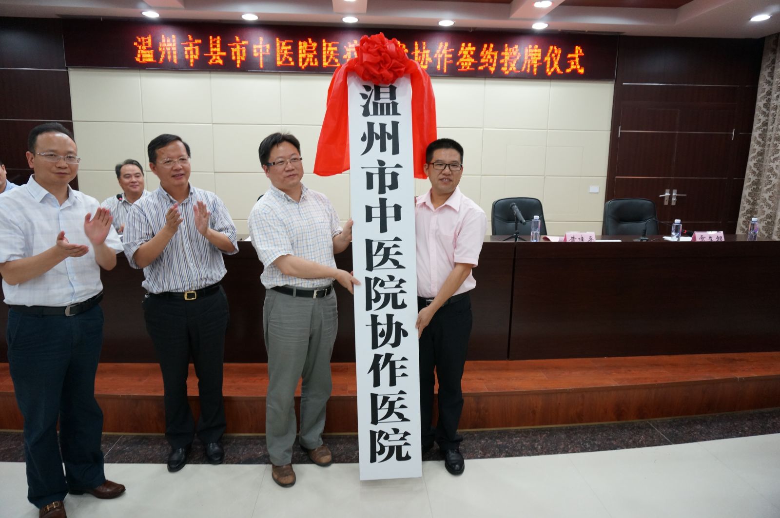 8月7日上午,温州市卫生局与泰顺县人民政府签署建立合作框架协议,我院与泰顺县中医院签署签订合作协议,授予泰顺县中医院“香蕉视频 协作医院”牌匾,温州市卫生局局长程锦国、泰顺县县长董旭斌等领导出席签约授牌仪式。