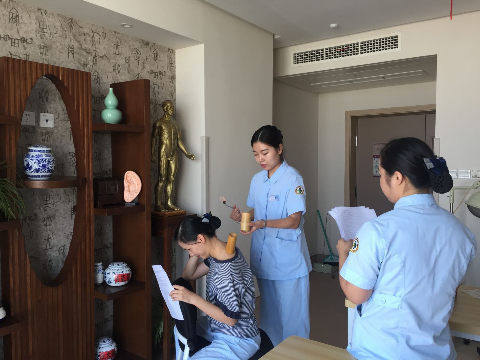 23日上午在各个楼层的中医综合治疗室里举行了中医护理操作技能比赛。在充满中医氛围的环境中,参赛人员进行了拔罐、耳穴埋豆、刮痧等中医护理项目的比赛。比赛包括中医护理评估、辨证、选穴、定穴、操作以及健康教育等内容,通过参赛人员对情景案例的辩证施护,提高了护理人员中医护理的整体观念和辩证施护的能力,更体现了此次比赛对环节设计上的用心。