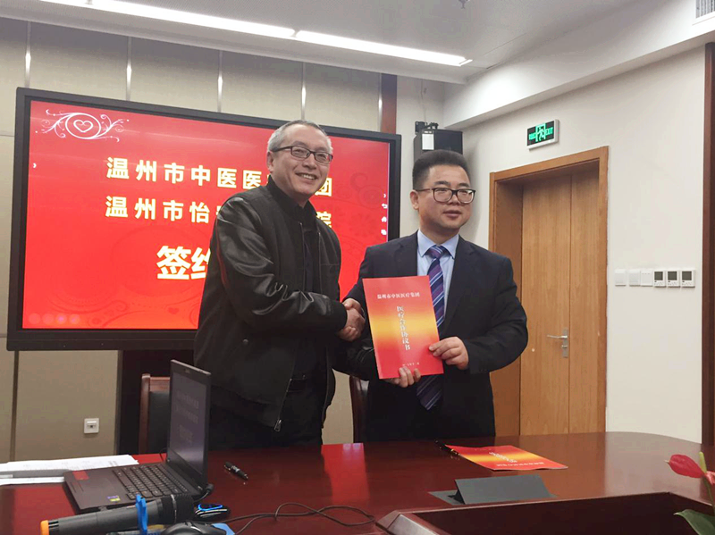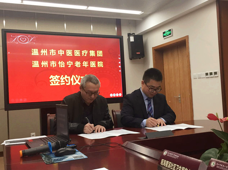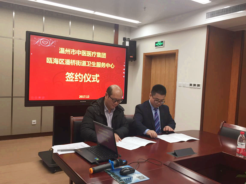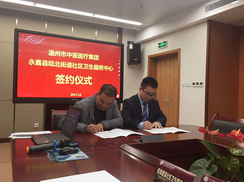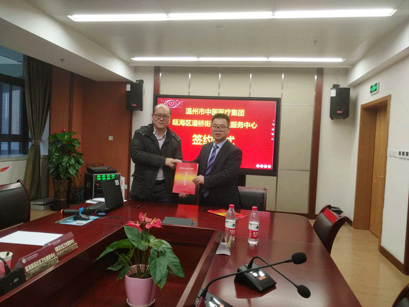 最后,王庆来院长代表中医医疗集团与集团3家新成员单位(瓯海区潘桥街道卫生服务中心、永嘉县瓯北街道卫生服务中心、温州市怡宁老年医院)进行了隆重的签约仪式。