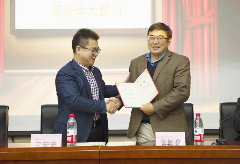 ▲王庆来院长为管敏鑫教授颁发高级学术顾问聘书