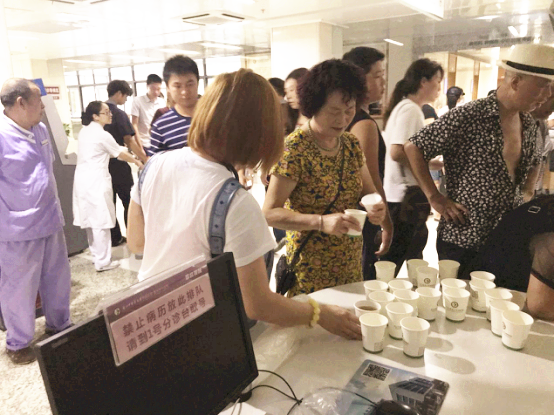 连日来持续高温,为了给前来就诊的患者及家属送去清凉,我院特在医院门诊大厅处设置免费茯茶供应点。